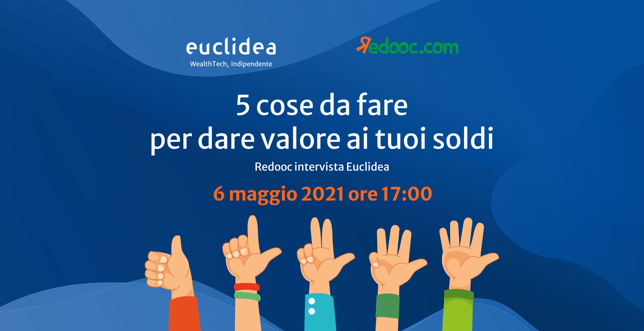 Giovedì 6 maggio alle 17.00, Euclidea terrà un webinar in collaborazione con Redooc, la più grande piattaforma italiana di didattica digitale: "Le 5 cose da fare per dare valore ai tuoi soldi".